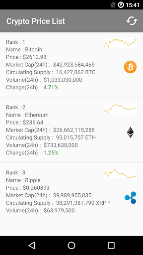 This app lets users see the latest price, volume, change and market capital of various crypto currencies like Bitcoin (BTC), Ethereum (ETH), etc.