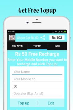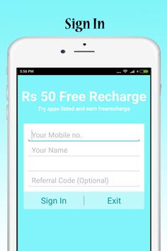 Rs 50 Free Recharge app is now the easiest free online mobile recharge app . All your Rs 50 Free Recharge needs to do is complete some quick and easy offers, like downloading different kinds of apps.Recharge your mobile instantly. Rs 50 Free Recharge is a free mobile recharge app that gives you the best opportunity to earn free mobile recharge or free talktime instantly by downloading free apps listed in the app.Earn free recharge by just downloading and trying new apps, you can earn even more by inviting friends to Rs 50 Free Recharge app and