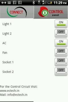 Once you have assembled the electronic circuit, start this application, from the search tab search for available Bluetooth Modules, connect to one you have attached on the electronic circuit. After a successful connection the app automatically redirects to the Control panel. Now you can switch any device connected to the relays on the electronic circuit by clicking on the respective toggle buttons.