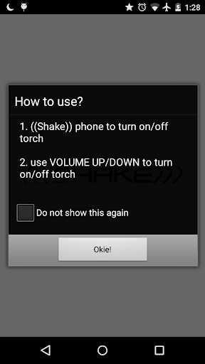 Flashlight - Shake Torch is a simple flashlight app where you can shake the phone to turn the flashlight on and off.