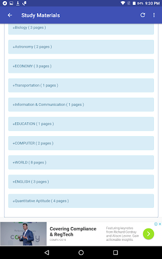 2. Play Quiz section - Play online quiz with levels. Each level contains 25 questions with four options of which only one option is correct.