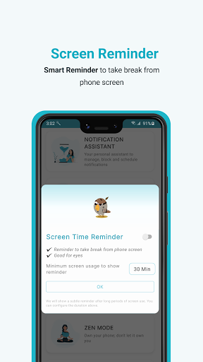 We lose sense of time while using phone, this feature will help you with subtle reminders and it is good for eyes. You can configure as you want.