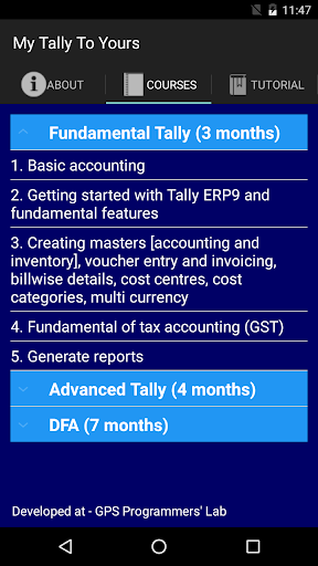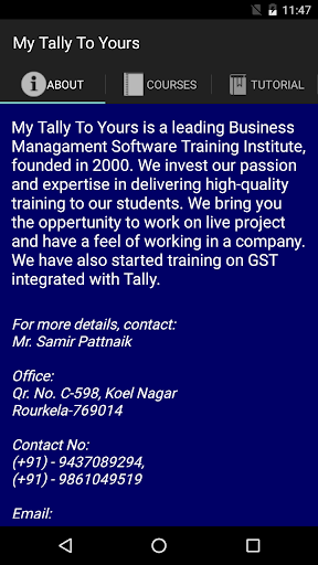 An idea of Mr. Samir Pattnaik, a well known expert in Tally since 2000. My Tally To Yours is Mr. Samir's idea to share his accounting knowledge among learners. This app contains step-by-step processes of different accounting operations with screenshots and videos. The learners may use this as an e-Handout. We will keep updating the app with many other features. If anyone have any suggestion, please send it, we will definitely work on that.