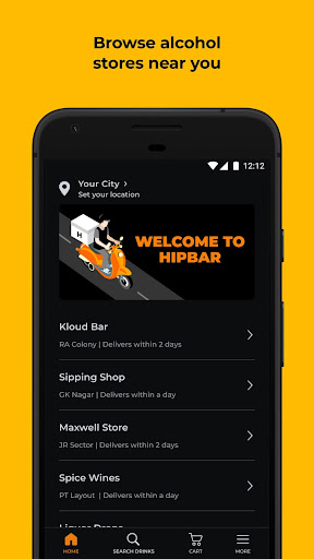 With HipBar, get your favourite drinks (Beer, Whisky, Tequila, Rum, Brandy, Gin, Wine, Vodka, etc.) delivered home.