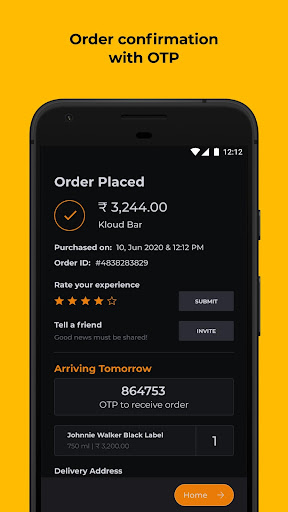 Get Delivery: Once the delivery executive arrives at your doorstep, submit your OTP, show a valid ID, and receive your drink.