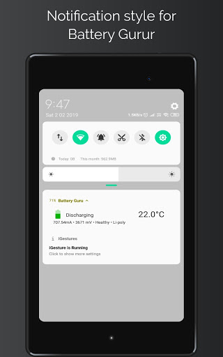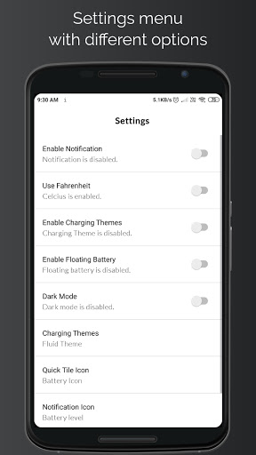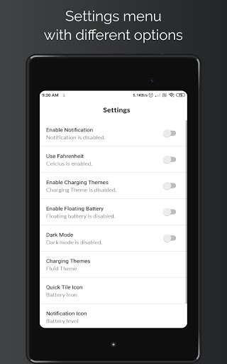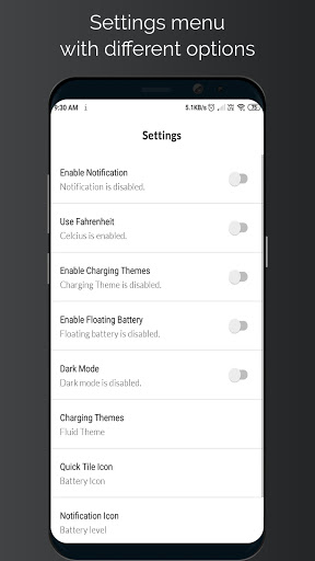 - Showing battery icon on floating screen and status bar;