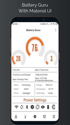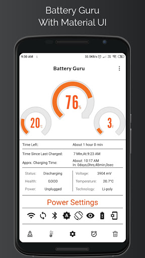 Battery Guru allows you to monitor the status of the battery of your smartphone.