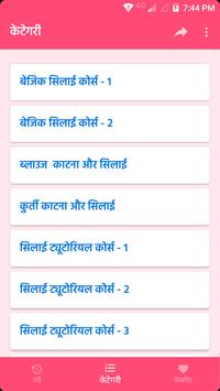 Categories included like, basic sewing course, blouse, kurti, party wear, children cloths, neck design, arm design etc...