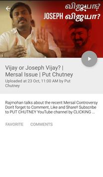 Watch videos from famous Tamil YouTube channels like Madras Central, Put Chutney, Smile Settai at one place. Spend your idle time in watching these awesome videos and not searching for it. Find new videos and upcoming channels instantly as we collect and list them for you in an awesome interface.
