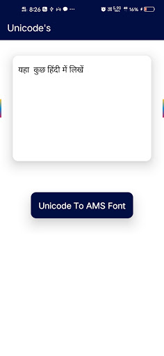As AMS Font is Unicode font used to type in Hindi so this app helps to convert AMS font Hindi text.