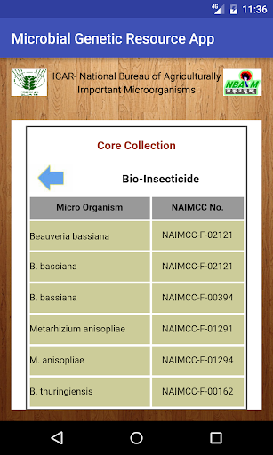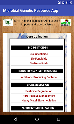 Microbial Genetic Resource Portal contains information on agriculturally important microbes conserved in National Agriculturally Important Microbial Culture Collection (NAIMCC) housed at National Bureau of Agriculturally Important Microorganisms (NBAIM), Mau, Uttar Pradesh which is among one of the premier organizations of agricultural and microbial biotechnology holding its responsibilities in the area of collection, isolation, conservation, management and