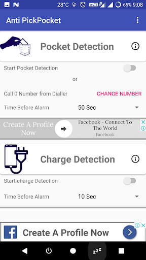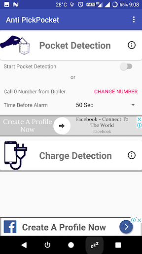 Once the pocket detection is switched on, there is a User customised amount of seconds within which the user has to unlock the phone after it is taken from his/her pocket. Else the phone keeps ringing till the user unlocks the phone