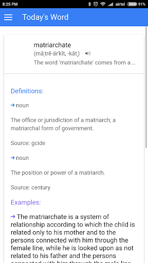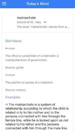 Features: - phonetics - etymology - pronunciation - definition - examples