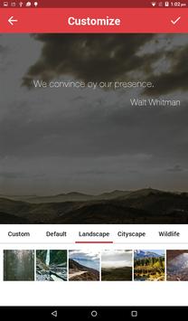 If you’ve ever read a motivating or inspirational quote that really moved you, and then later tried and failed to find it again, you know how disappointing that feeling can be. Well, you have nothing to worry now—just tap the “heart” beside a quote and it will be saved in a list of your favorites, so that you can reflect on it anytime you’d like.