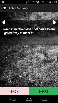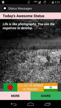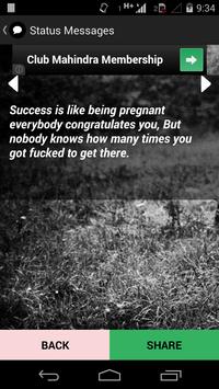 Daily get a notification with a new message reminding you to change your whatsapp status or funny one-liners for sharing in facebook and twitter. Easy to use simple UI and easy share button to all the apps installed in your android phone.