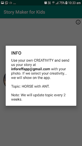 Story Maker is a fun and easy way to promote your children. Send your creativity at inforeffapp@gmail.com and we will publish on the app.