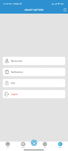 4. Upon clicking on the menu tab the profile image of the user uploaded from the web app will be visible along with the user name & meter id. The menu order is as follows :-