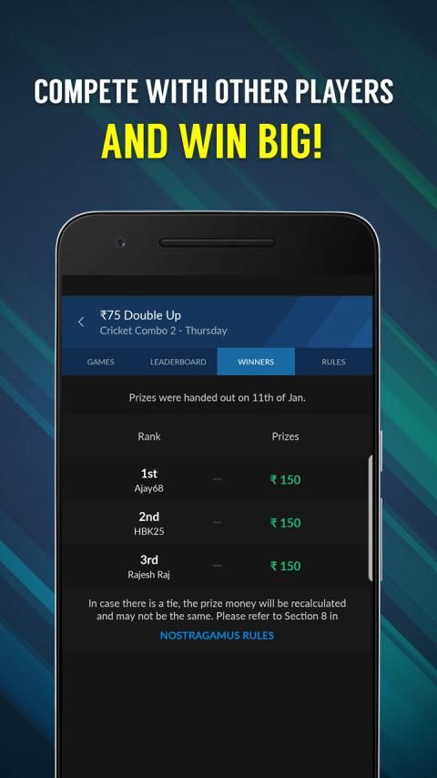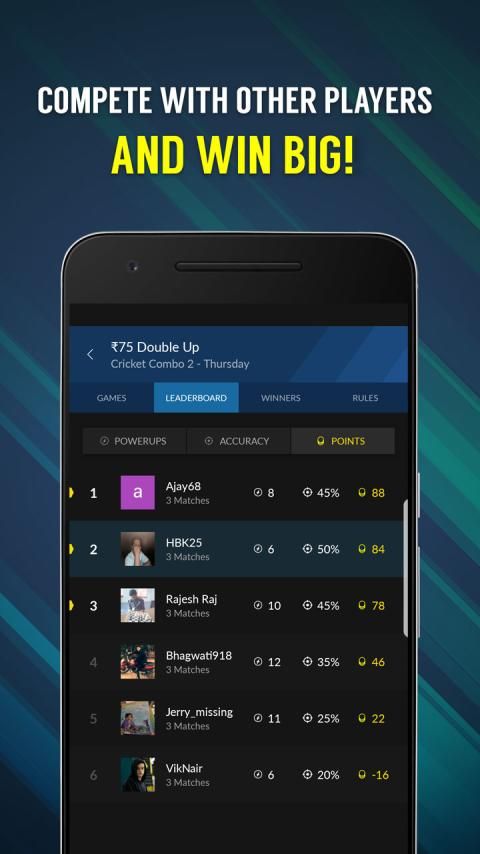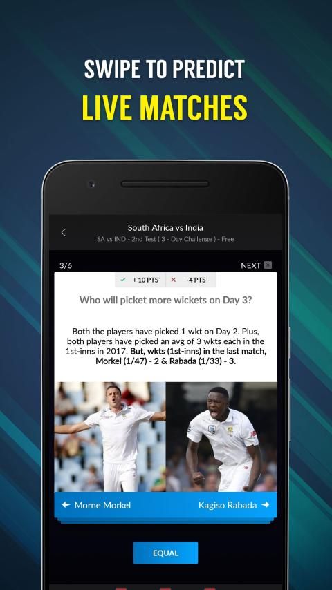 No need to select 11 players to make a team, just simply swipe to predict and answer few questions. Earn the maximum points and win cash prizes.