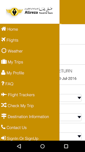 Alireza Travel & Tour allows users to book air travel through their android. The application allows them to search for the lowest fares available and also make a booking request which is fulfilled offline.