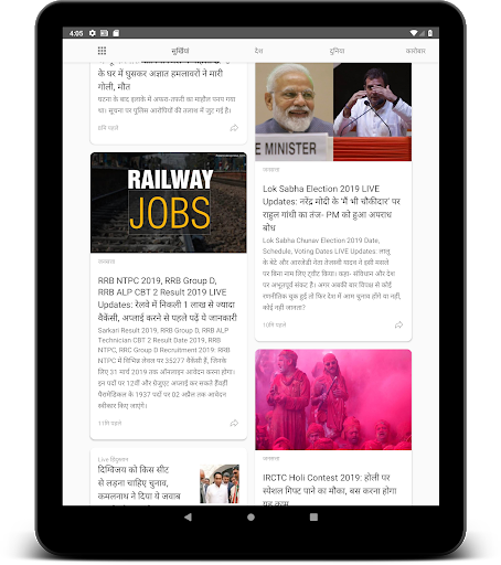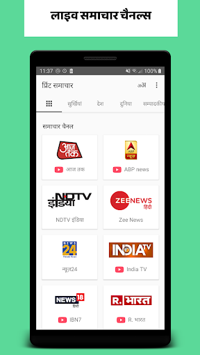 This is the Hindi version of Print News. Read trending Hindi news from different Hindi news channels like Aaj tak, NDTV, Zee News, News 24, BBC, IBN 7, etc and newspapers like Hindustan, Navbharat times, Dainik Jagran, Dainik Bhaskar, Prabhat Khabar, Jansatta, Business Bhaskar, Samachar jagat, Haribhoomi, Sahara samay, Shri news, Bhasha PTI in one place.