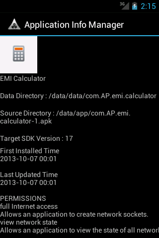 This can be helpful to developers who wish to gather information and know better about other applications. Application Info Manager will help you determine other details about the application including the version name, version number, the target SDK version, the root directory where the application stores its persistent data etc.