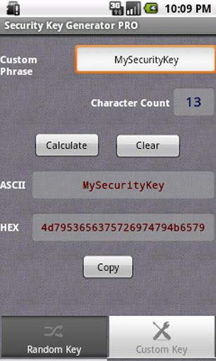 PRO feature: Use custom phrases of length 5/13/29 for generation of 64/128/256 bit keys.