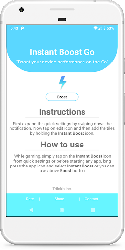 Instant Boost GO is a powerful and efficient offline booster with in-built Instant booster which helps in playing heavy games while saving more battery and cools down CPU