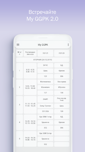 My GGPK - это простое, универсальное и доступное всем приложение. С его помощью каждый сможет быстро смотреть свое расписание, не отвлекаясь на надоедливые рекламы. Благодаря сея творению вы не будете опаздывать и пропускать пары. Данное приложение сделано специально для Гродненского Государственного Политехнического Колледжа и абсолютно всех его учащихся не зависимо от специальностей, курсов и семестров.