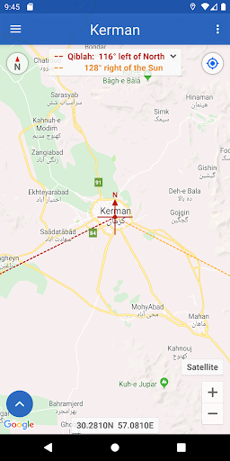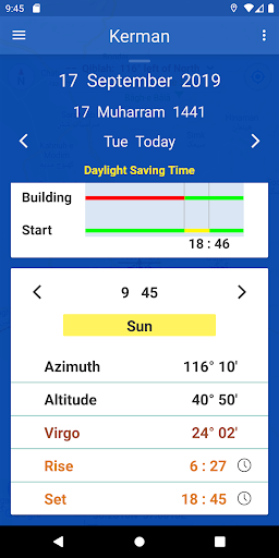 - Thời gian nhìn thấy hình lưỡi liềm mặt trăng và dữ liệu - hiển thị hướng Qibla trên bản đồ so với vị trí mặt trời hoặc bởi Phương tiện của La bàn