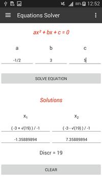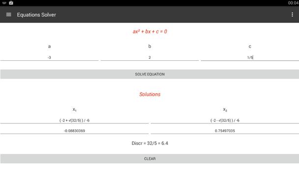 It solves second and third degree equations showing complex results as well when needed.