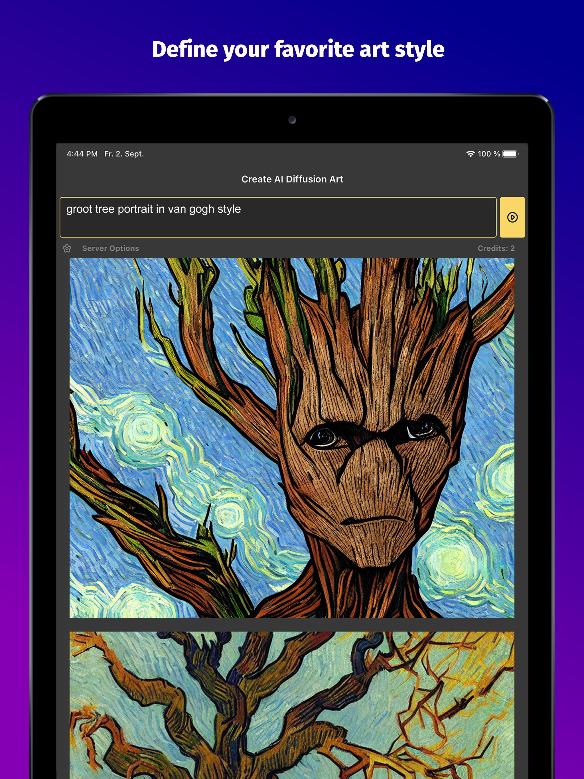 While we are working on a native iOS-based and GPU-powered app to generate art directly on your device, this app relies on a shared server to generate the art for you. This means that your requests are queued and processed together with others which means some waiting time.