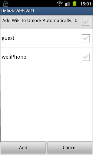 When you're at home or in your office, your phone is safe and you don't need to be typing in your password all the time. When you're connected to designated WiFi network, your phone will unlock automatically. Then when you leave, and the designated WiFi disconnects, the phone will lock again and protected with password. If somebody steals or finds your phone, they can't unlock it. The smart unlock is the leading password convenience app on the market.