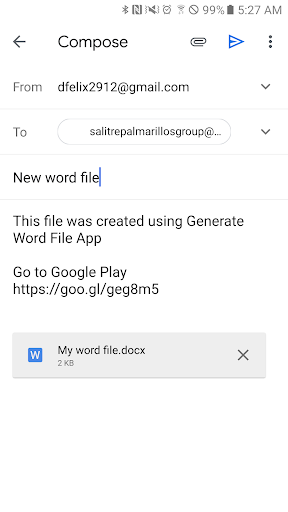 This application is not an editor, it allows you to generate word documents with it with a simple configuration about the attributes of the document. As well as it also allows to open or share in an isntantane way to the created documents.