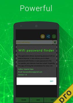 do you want to find a wifi network password but you forgot it? do you want to share your password with a friend but you can't find it? wifi password finder pro allows you to find wifi passwords stored in your phone and show them on your device quickly and easily. save, restore or share wifi passwords on the go for free and enjoy.
