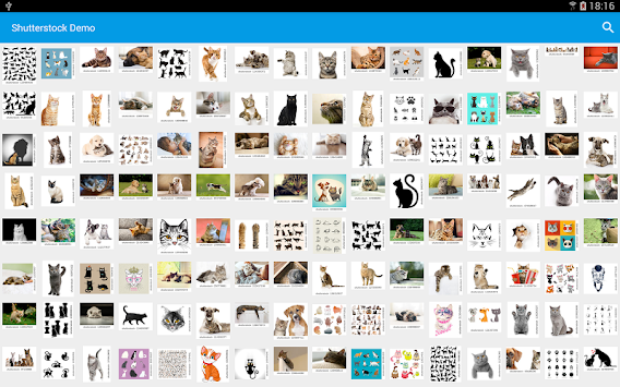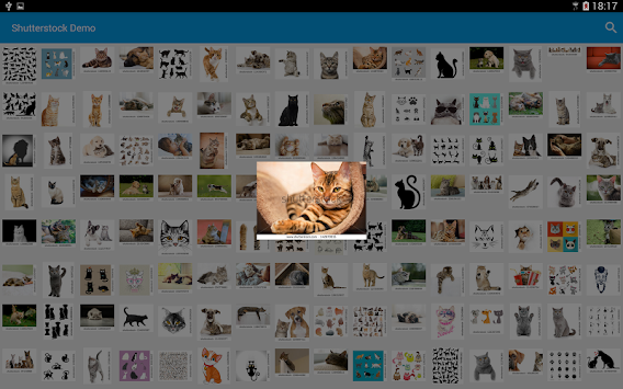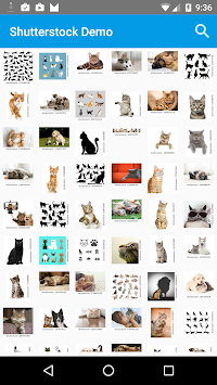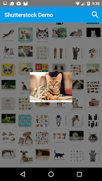 The purpose of this app is to demonstrate how to retrieve images from Shutterstock using a RESTful call and displaying them in a RecyclerView. A query can be entered to retrieve a specific set of images. The app includes a pull-to-refresh to retrieve additional images. Tapping on a thumbnail image will also load a larger version of the image.