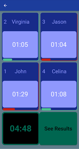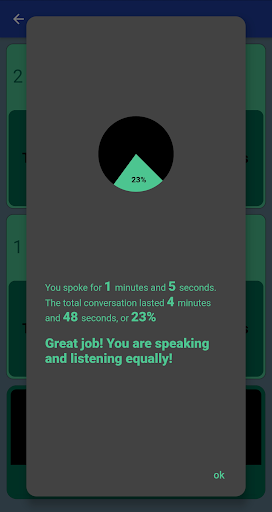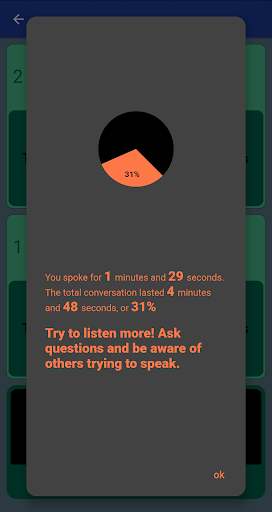 Enough Talk will record the total discussion time along with each speaker's time and contribution percentage.