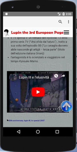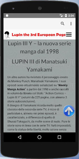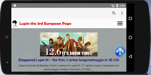 App on Lupin III fansite: Lupin the 3rd European Page. Lighter design for Android and notification on new articles. Add a toolbar with search and a app menu'.