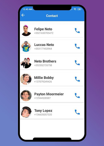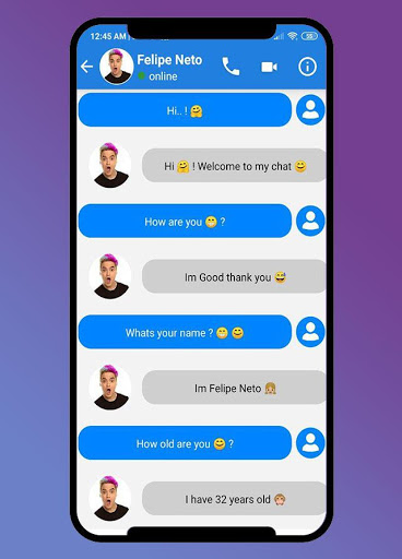 Felipe neto call you : Fake call and video call application to accompany your days in your free time when you feel lonelyand boring then entertain yourself with fake calls from your idol. this application to simulation a fake chat messenger with a fake call and video call, we add option to start live with your Hero, to look a real chat messenger live. all this just for prank your friends or your family to make a fake chat with favorite irmaos neto to be a real chat, you have many option to connect with Felipe Neto Call and irmaos neto calling voice, Luccas Neto live chat or Neto calling video.