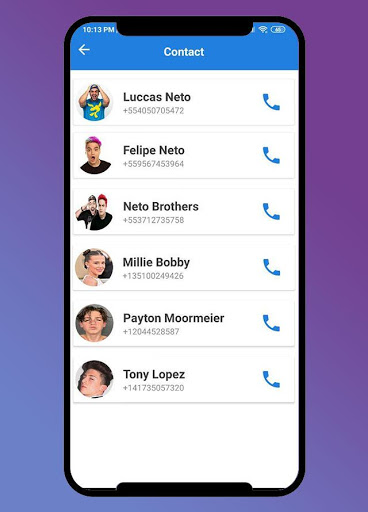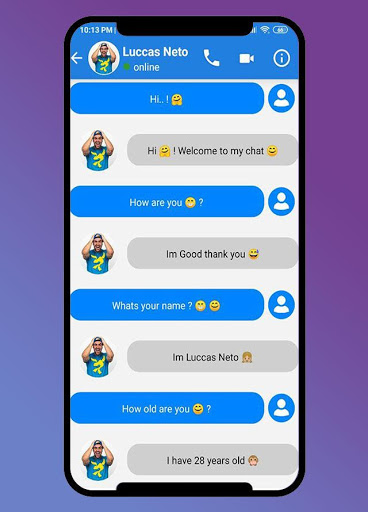 Luccas neto call you : Fake call and video call application to accompany your days in your free time when you feel lonelyand boring then entertain yourself with fake calls from your idol. this application to simulation a fake chat messenger with a fake call and video call, we add option to start live with your Hero, to look a real chat messenger live. all this just for prank your friends or your family to make a fake chat with favorite irmaos neto to be a real chat, you have many option to connect with Felipe Neto Call and irmaos neto calling voice, Luccas Neto live chat or Neto calling video.