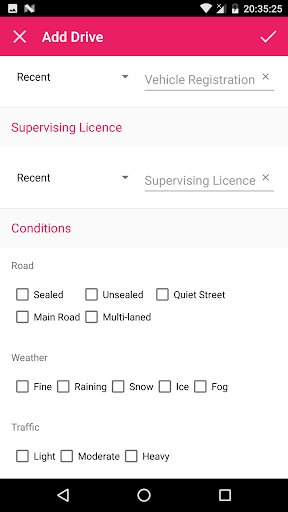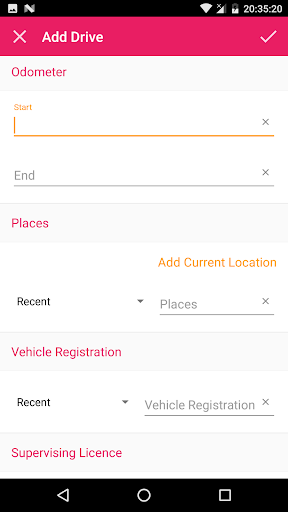 - Easily reelect recently used places, registrations and supervising license numbers.
