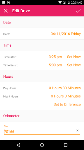 - Set the day and night hours to the time between start and end of a drive with just one click
