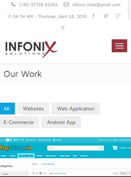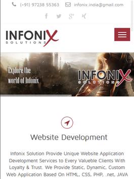 Infonix Solutions is an India-based Software & Web development Company with talented professionals. Infonix Solutions has a wide range of experience in Website Design, PHP Development,.net with C#,VB, Software Development, Ecommerce web solutions, Logo Design, Graphic design, Flash Development, Website Re-Design, PHP Development India, Asp.net Web development, Search Engine optimization (SEO), Shopping cart development, CMS Development, PHP Web application development, PHP/Mysql programming, Outsourcing,Business catalyst Development and Pinnacle cart development.