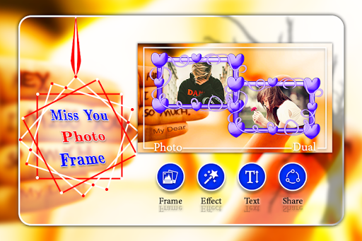 I Miss You frames will empower you with various photo frame effects. Select a photo and start editing it and be part of I Miss You photo.