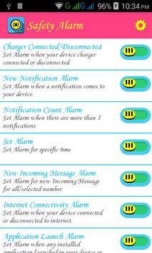 Safety Alarm let's you enjoy voice notification or alarm tone for every events happen in your phone.