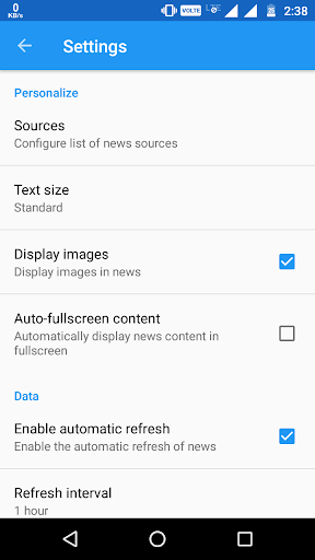 The news once loaded are stored offline. User can configure how much time it should be stored in the app from settings. The news can be shared with more content and links.