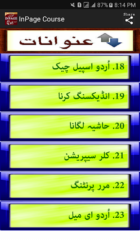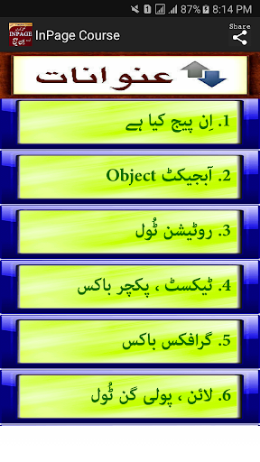 in page Urdu is a detailed course book about Urdu Inpage. In the said book i have tried my best to teach the reader the use of Inpage Urdu with the help of images and screenshots .This is a complete Urdu offline book of learning Inpage in Urdu for beginners upload in 2017.Download it in your Android Set. share it with your facebook friends.