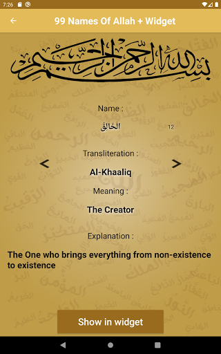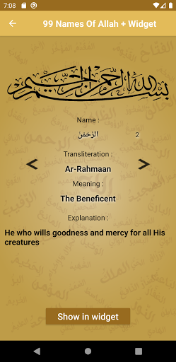 Learn through this application one of the 99 beautiful names of Allah each day.