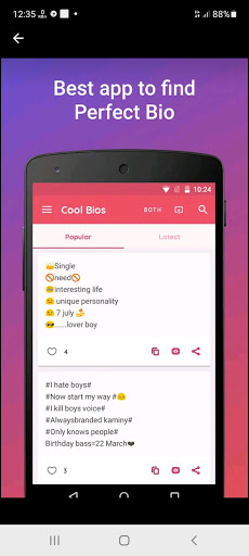 Read only what you need. Gender-based filtering helps a boy find attitude insta bio, and a girl can easily find some cute girly Instagram bios.