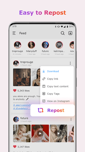 Easily to repost videos or photos.