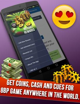 8 ball pool instant rewards free coins Pool tools billiards unlimited coins & cash extended stick big guide line